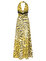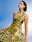 Ürün Açıklaması: Boyundan düğme kapamalı, arkadan fermuarlı, sırt ve göğüs dekolteli, desenli drape detaylı elbise