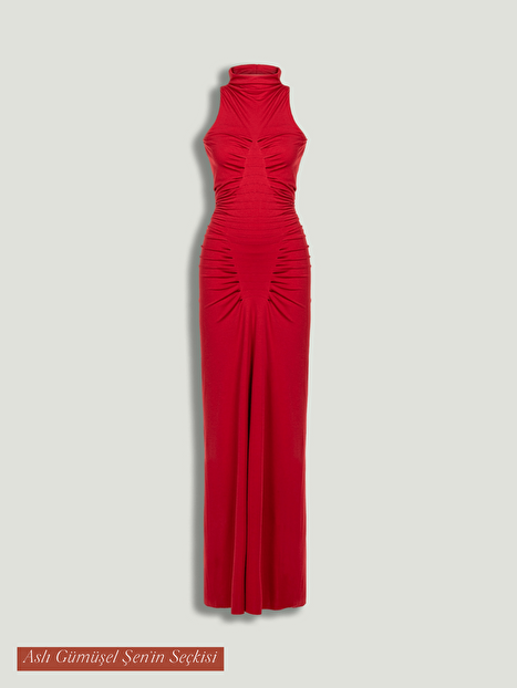 Drape Detaylı Yırtmaçlı Maxi Elbise