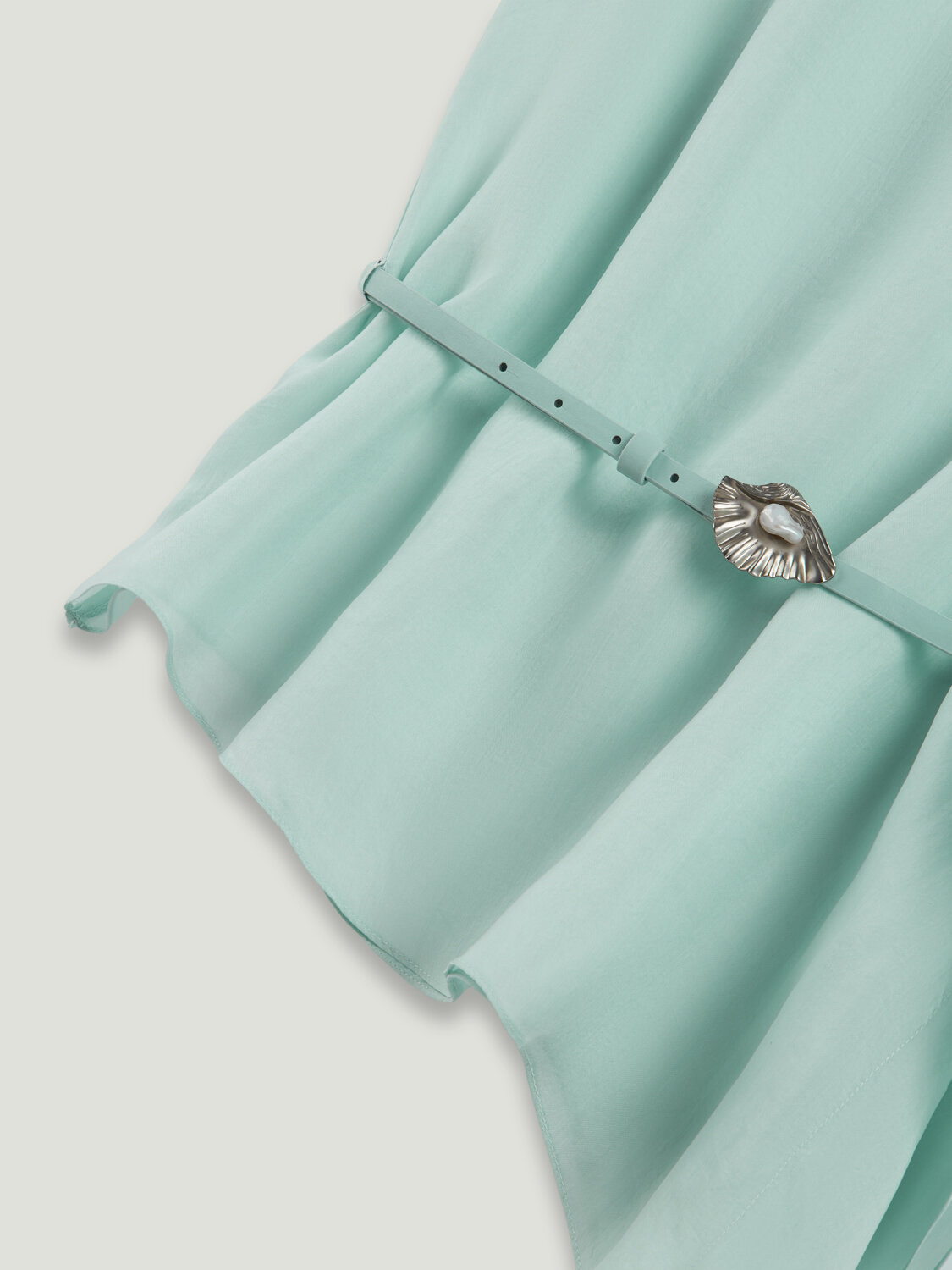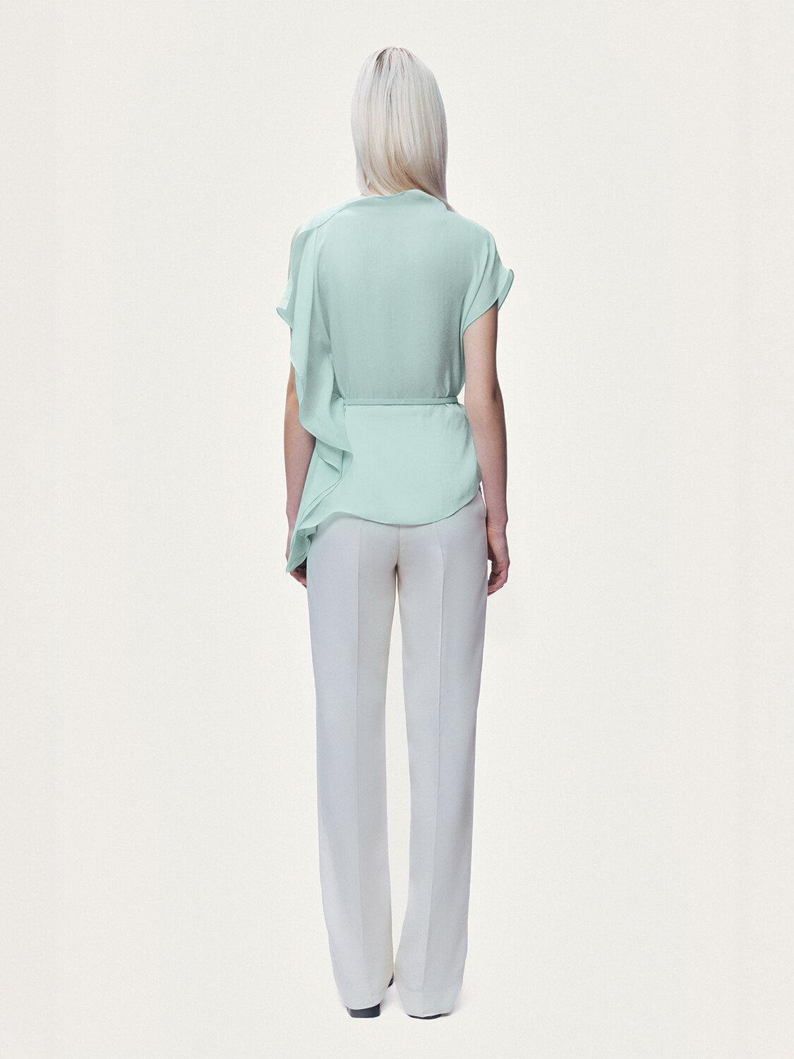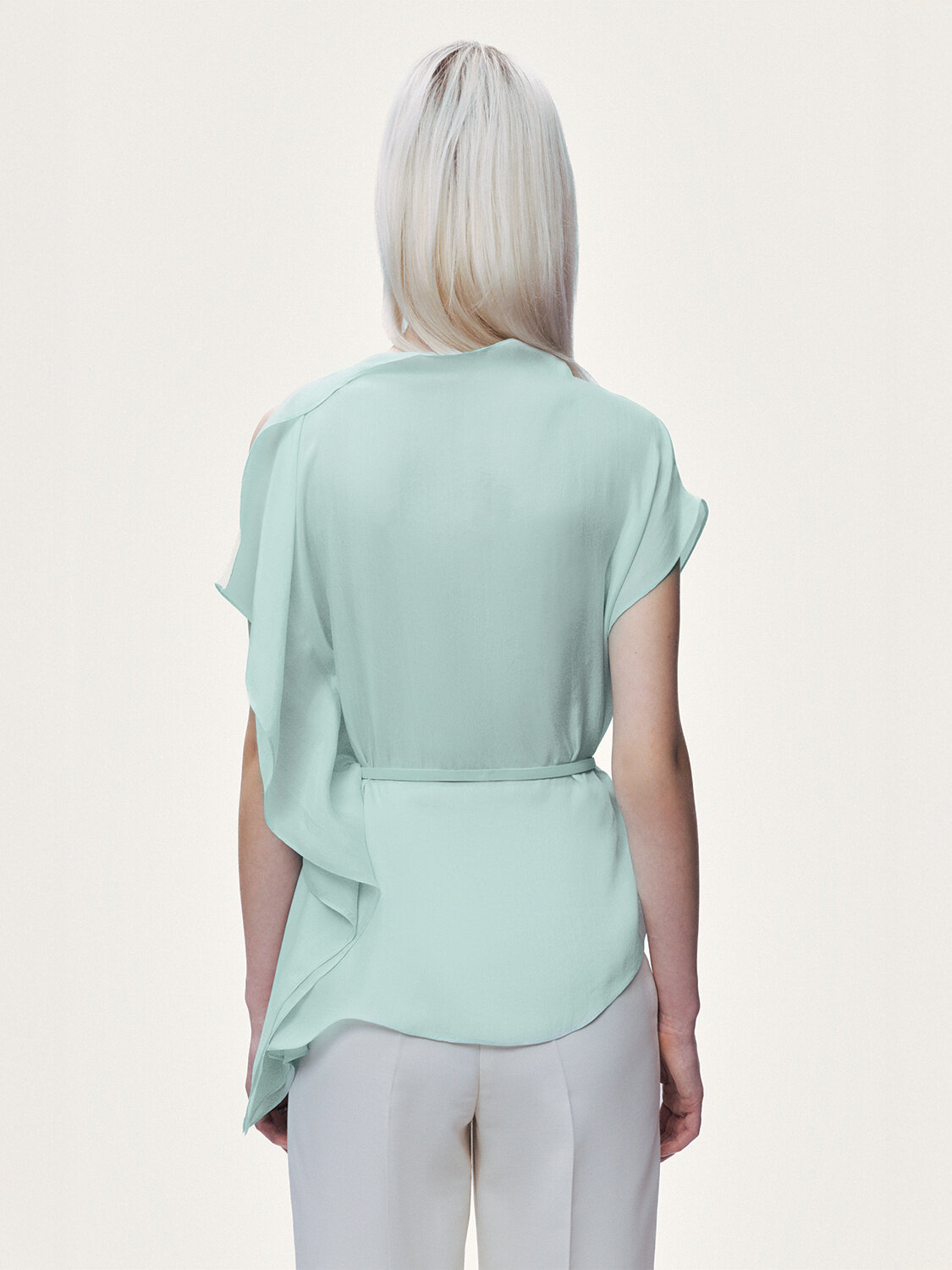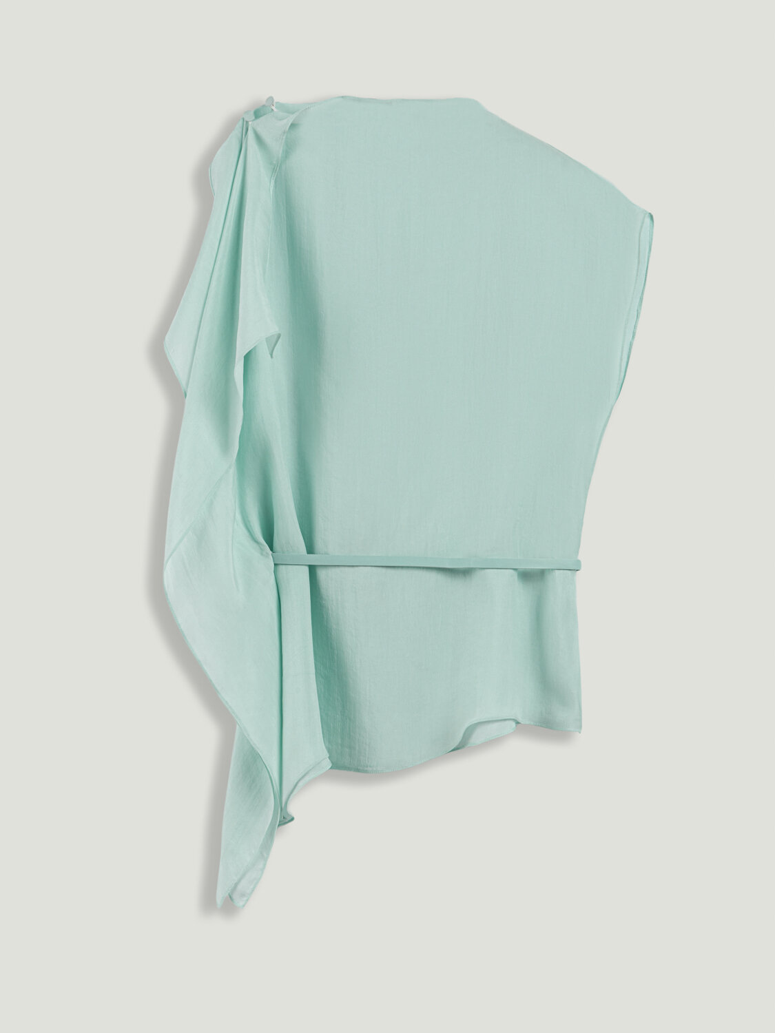 Regular fit kesimiyle dengeli bir siluet sunan bu bluz, astarsız dokuma yapısıyla hafif ve konforludur. Kolsuz tasarımı ve sıfır yakası sade bir duruş sağlarken, asimetrik kesimi ve kemer detayı modele modern ve dikkat çekici bir dokunuş katar. Günlükten şık kombinlere kadar stilinizi tamamlayan güçlü bir parçadır.
