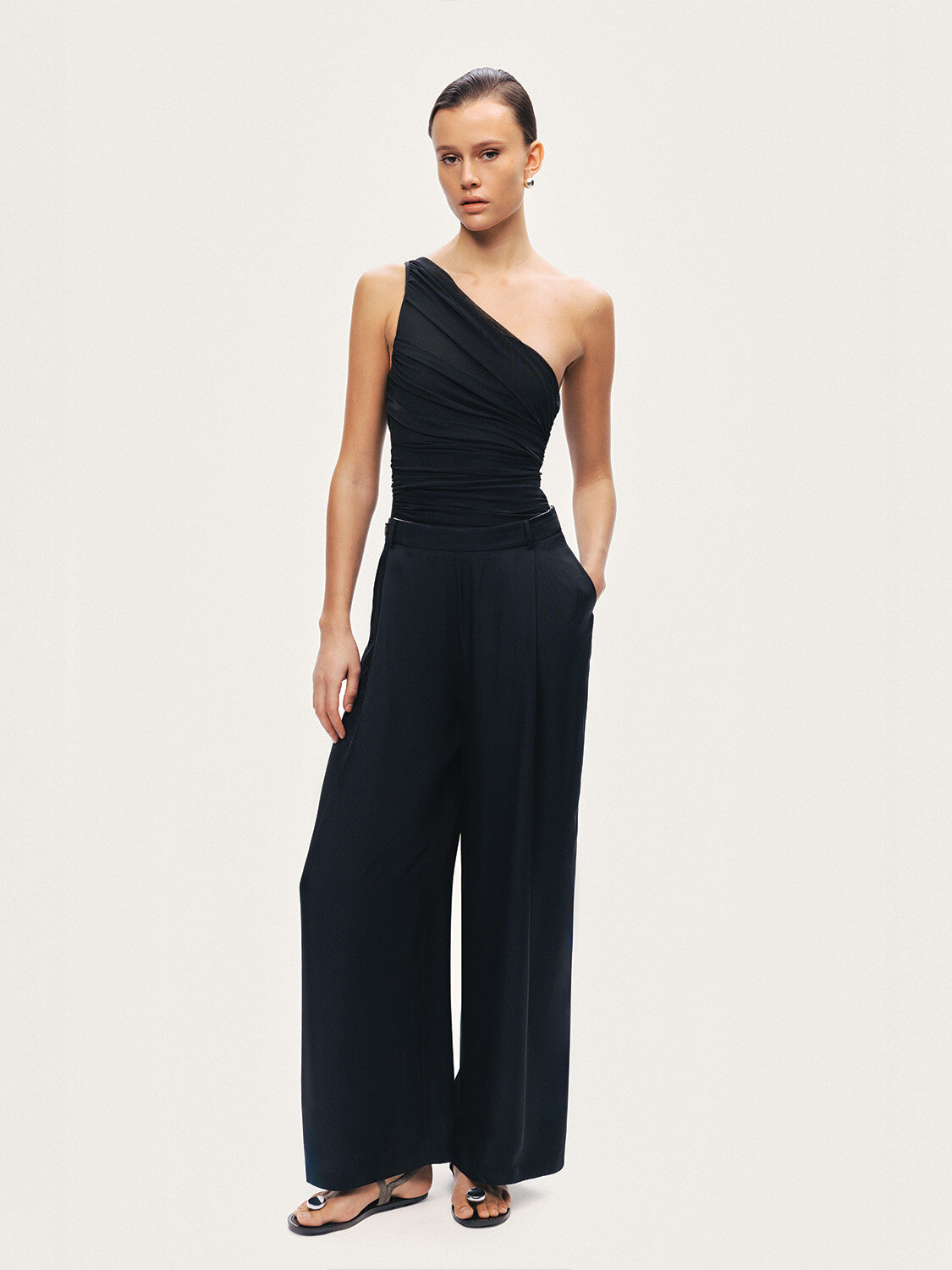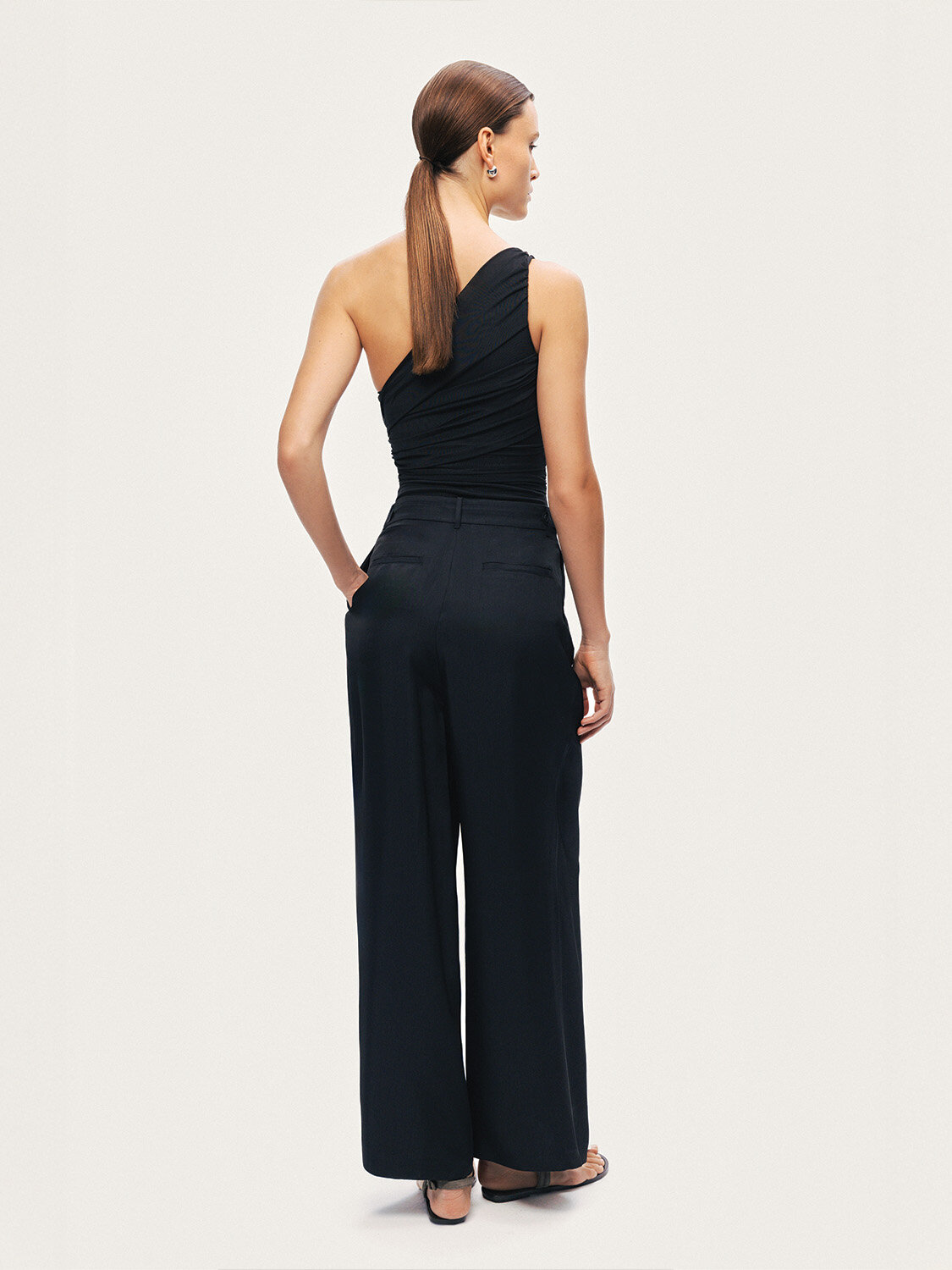 Relaxed fit kesimiyle rahat bir siluet sunan bu pantolon, astarsız dokuma yapısıyla hafif ve konforludur. Düşük bel formu modern bir duruş kazandırırken, pile detayları modele hareketli ve şık bir dokunuş katar. Günlük kombinlere kolayca uyum sağlayan stil sahibi bir parçadır.