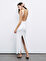 Ürün Açıklaması: Slim fit, tam kalıp, astarlı, bisiklet yaka, arkası büzgülü, önden kuşak bağlamalı, sırt dekolteli maxi boy elbise