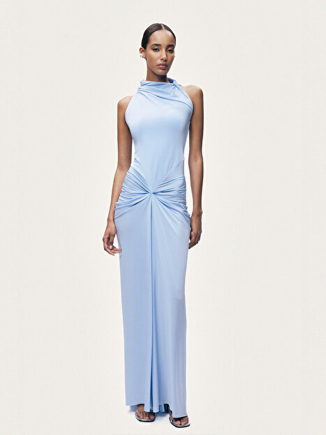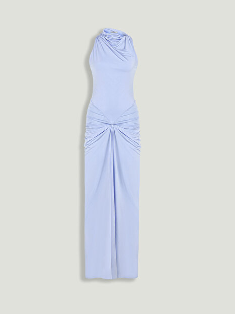 Pencere Detaylı Aksesuarlı Maxi Elbise