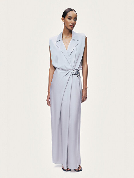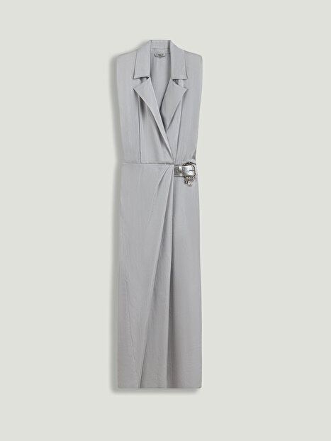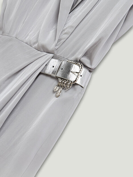 Aksesuarlı Kemer Detaylı Maxi Elbise